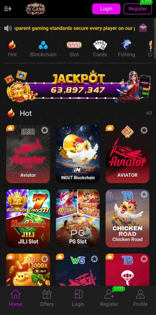 2V Game is a casino game designed for android users in Pakistan. This game emerge one top games because of its smooth display and easy navigation. 2V casino has alot of small games available in one application each game has its own capability to provide winnings to the users. Mini games are fortune gems, chicken roads, jilli slots, fishing, cards, aviators, and crazy 777, each game is easy to play. 2vcasino has very good security as similar to k666-game and 365win-game for accounts and it provides local payment methods in Pakistan including Easypaisa and Jazzcash.