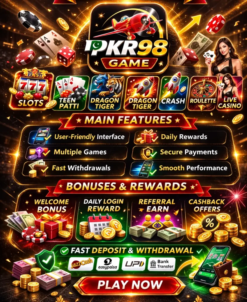 If you are looking for an easy-to-use Android casino app with quick deposits and withdrawals, PKR 98 Apk can be an option. Just remember to play wisely, manage your budget carefully, and treat it as entertainment rather than a source of guaranteed income.